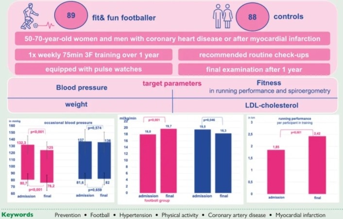 足球不仅是一项拥有无穷魅力的竞技运动,还是一种改善心脏功能的健身方式。根据来自欧洲心脏病学会官方医学期刊《欧洲预防心脏杂志》的研究显示,每周进行60到75分钟的足球训练,可以有效促进心脏、肺部、肌肉的综合锻炼,增强心肺耐力,对有心肌梗死或冠心病病史的人群产生了显著的健康改善作用。除了“治病救人”,足球还能激发参与者的积极性,减少孤独感,融洽邻里关系,促进社会和谐。
